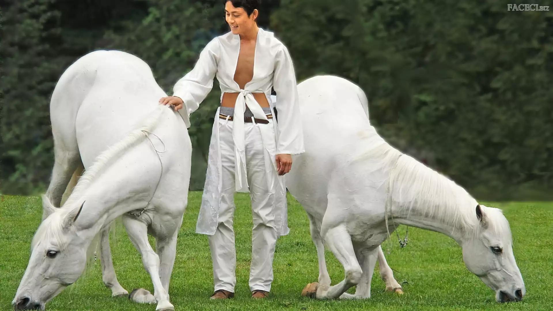 Treser, Mężczyzna, Dwa, Konie, Białe - faceci.biz